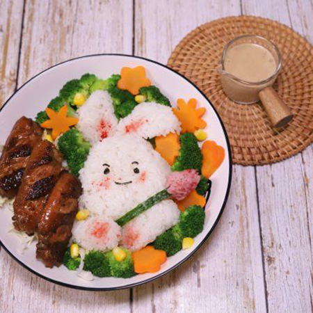 让吃饭变得更有趣:比如把切片的胡萝卜叫做“金币”,告诉他“吃了青菜会像小兔子跑的一样快”